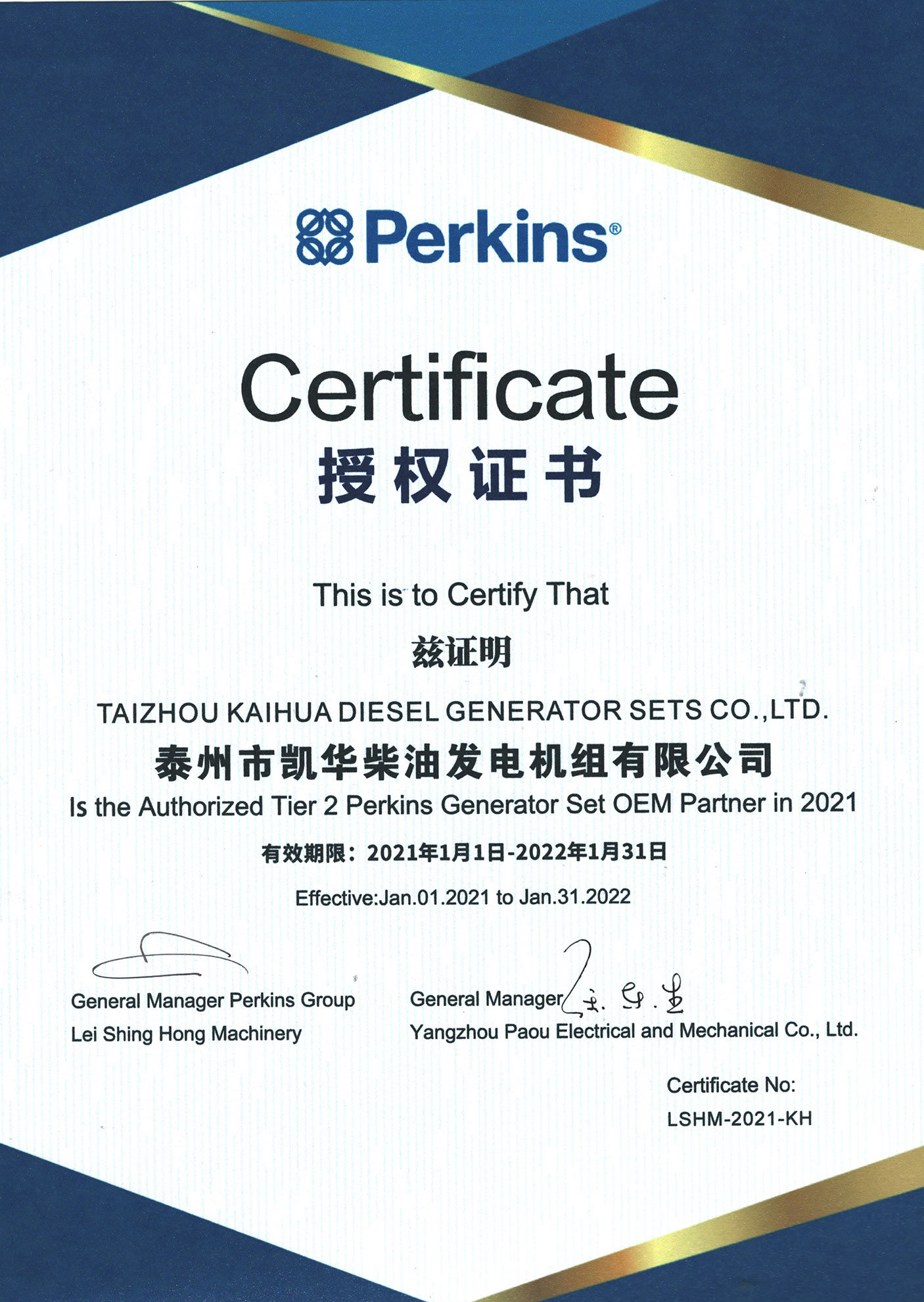 泰州市凱華柴油發電機組有限公司創建于2003年,是一家集柴油發電機組燃氣發電機組的研發、生產、銷售為一體的高新技術民營企業,公司座落于“漢唐古郡,淮海名區”,具有“鳳凰城”美稱的祥泰之州——江蘇省泰州市,地處中國經濟最發達的長三角經濟圈,水陸空立體交通,地理位置十分優越。公司目前注冊資本金11800萬元人民幣,生產基地占地六十畝,現有各類高素質員工一百多名,專業技術人員達46人,其中高級技術人員16人,年銷售額近6億元。